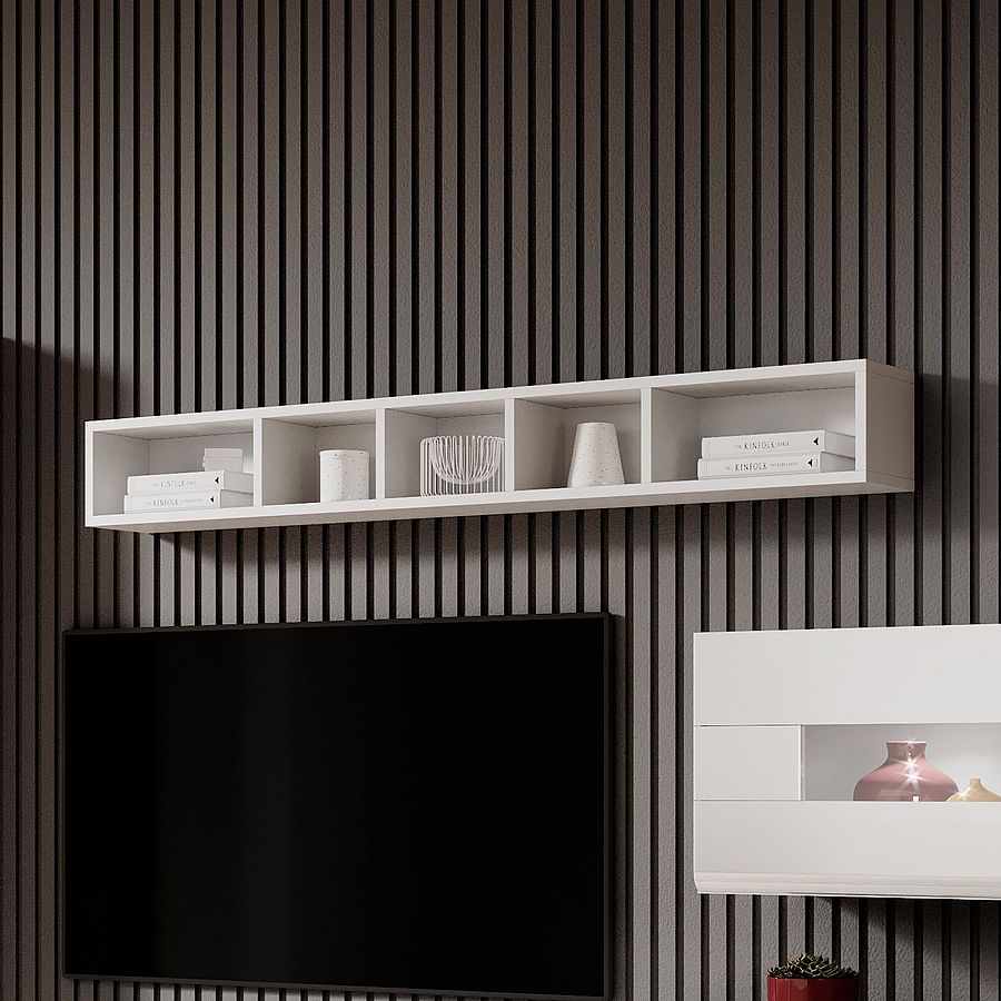 Полка подвесная Толедо 2498DW02 Белый ламинат / белый глянецПодвесной элемент из коллекции Toledo производителя Helvetia - это преимущество метрического пространства. Современная конструкция с множеством полок позволяет подчеркнуть красоту как семейных сувениров, так и поделок.Высокое качество изготовления устойчивого к царапинам мебельной плиты подтверждает долгосрочную службу. Белые цвета подвесной полки - универсальная ценность, благодаря которой предложение впишется в любой интерьер.