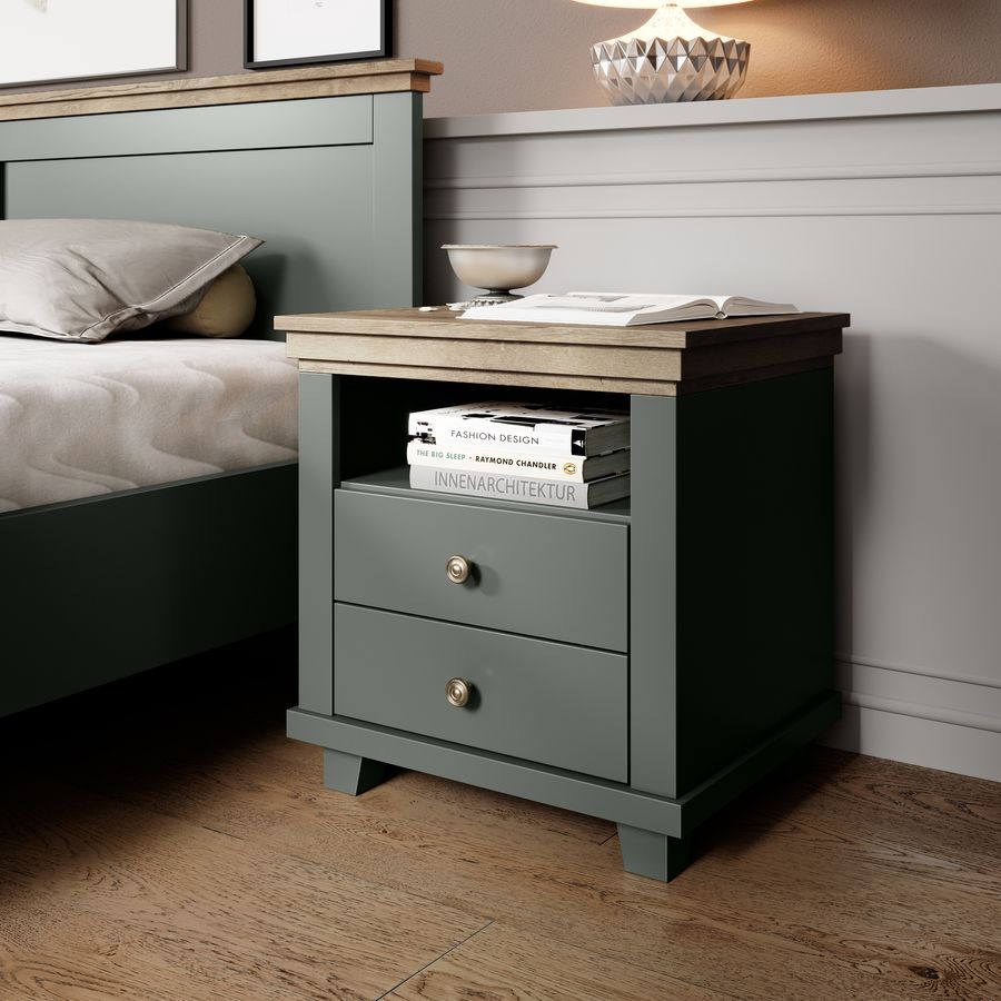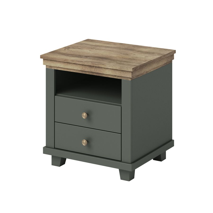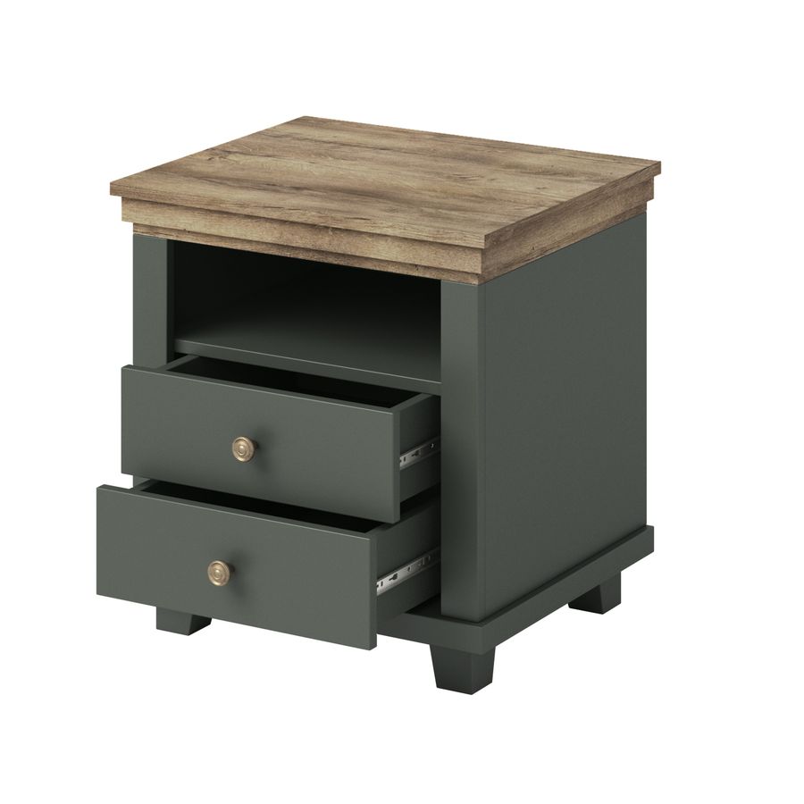 Тумбочка имеет 2 ящика полного выдвижения на телескопических направляющих с дотяжкой. Ящики достаточно вместительны и полезны, чтобы хранить всегда необходимые мелочи и некоторые собственные вещи. Прикроватная тумба Evora предназначена для спальной комнаты, а также в комнату свободного назначения для собственной необходимости. Весь корпус и фасады имеют зеленый цвет. Верхняя часть - дуб Лефкас. Тумба Evora 24ZRJU22 производится в стандартном виде, без изменения цвета, размера, конструкции. Поставляется в фабричной упаковке, в разобранном виде. Комплектуется всей необходимой фурнитурой и инструкцией для сборки. Самостоятельная сборка возможна при наличии необходимого инструмента.